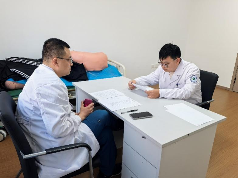 考场模拟了真实谈话场景,考核医师的信息传递清晰度、共情能力和风险告知规范性。医师需用通俗语言解释专业问题,同时妥善处理家属的焦虑情绪。普外科祝伟老师强调:“沟通的艺术,在于既不说‘过度’,也不说‘不及’,在坦诚中建立信任,在细节中体现担当。”