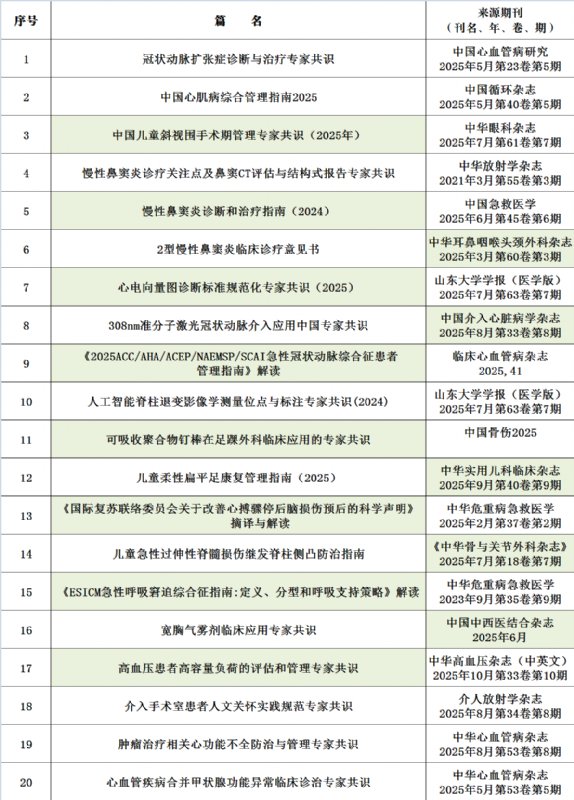为了使我院医务人员尽快获取医学期刊中最新的诊疗标准、规范、指南、专家共识及解读等相关内容。医院图书馆从中文期刊中筛选最新的国内诊疗标准、规范、指南并进行整理,定期更新相关内容的目录及全文。