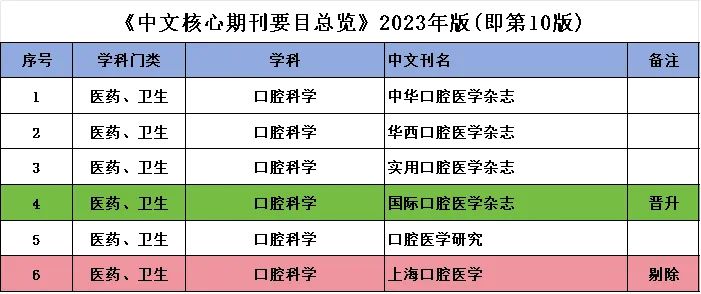 有5本期刊入编。新入编期刊有1本:《国际口腔医学杂志》。被剔除期刊有1本:《上海口腔医学杂志》。