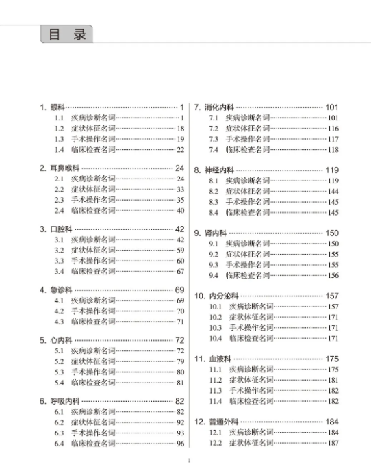 以下为本书目录,可点击👉《常用临床医学名词(2023年版)》下载全书。