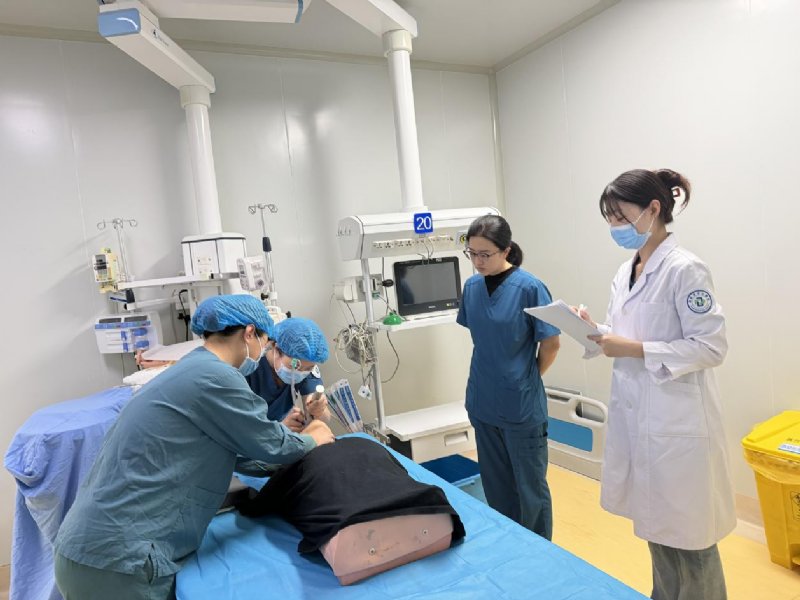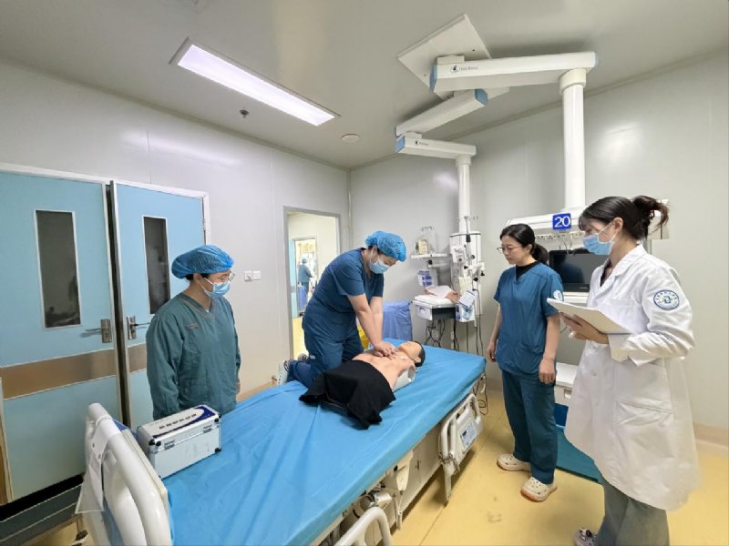 12月03日13时,我院重症医学科专业基地技能操作间的门被轻轻推开——住院医师沈惟抱着模拟气道模型站在桌前,基地主任张丛凤、教学秘书关鑫、指导医师宫倩已围在模拟病床旁,蓝色盖单下的“患者”,正等待一场以“呼吸困难、血氧骤降”为核心的急救实训考核。