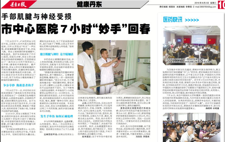 《丹东日报》报道我院手足外科技术精湛成功救治重度手外伤患者一例