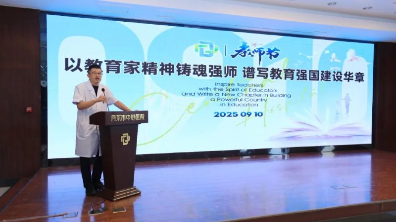为弘扬尊师重教的优良传统,在第41个教师节来临之际,丹东市中心医院举办了“以教育家精神铸魂强师 谱写教育强国建设华章”为主题的教师节庆祝活动,医院领导班子,科教科、住培办全体,各住培专业基地主任、教学主任、教学秘书共计70余人欢聚一堂,总结临床教学成果,凝聚医学教育发展共识。活动由科教科科长栾炯地主持。