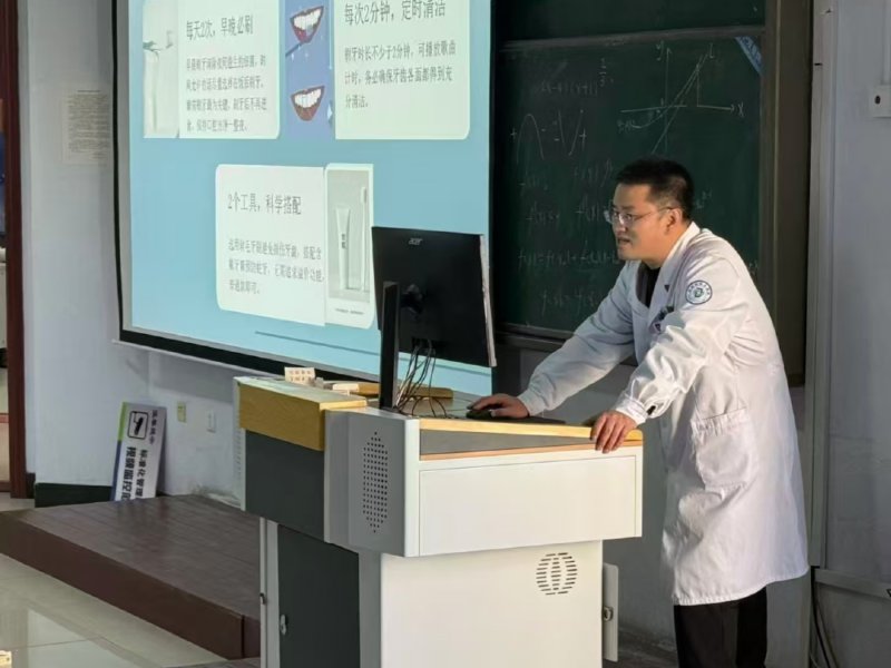 活动伊始,管德胜医生带来“关注口腔健康,绽放青春笑容”主题宣讲。针对大学生作息不规律、外卖饮食频繁、备考压力大等群体共性,他用通俗生动的语言,从龋齿、牙周病的成因与危害切入,系统讲解了正确刷牙方式、牙线使用技巧、定期口腔检查的重要性,还针对智齿拔除等常见困扰,给出科学应对方案。现场通过真实案例分析、互动问答等形式,将专业知识转化为易懂实用的护牙技巧,引导同学们树立“预防为主、防治结合”的健康理念,让健康知识真正融入日常生活。