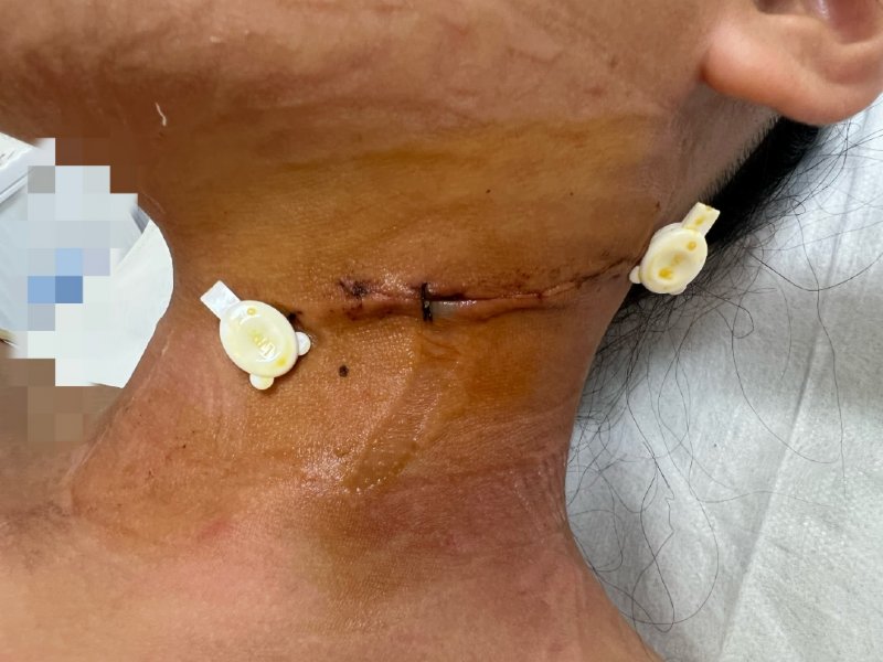 11月5日9点30分手术启动,谷长宏主任团队如精密工匠,既要完整剥离肿物,又要守护血管神经,每一步都考验技术与胆识。历时近3小时,肿物被完整切除,颈总动脉等结构毫发无损!术后病理确诊为罕见先天性良性“囊性淋巴管瘤”。