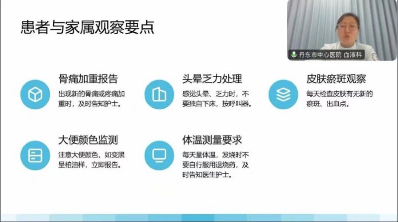 丹东市中心医院血液科护士长高春燕则聚焦患者护理需求,结合临床病例,深入浅出地讲解了疾病特点、骨骼护理、肾脏保护、感染预防及营养需求等知识,为提高患者生存质量提供了科学指导。随后,她与线下参会家属互动,现场演示手卫生、PICC护理操作,并通过游戏环节帮助家属深刻掌握防护知识。